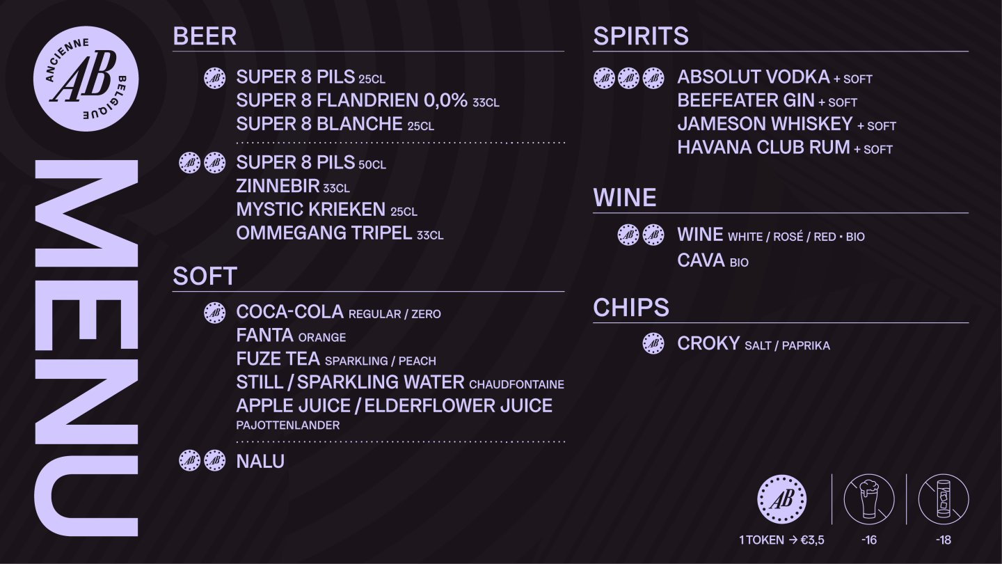 Plan je graag vooruit? Maak een account aan en koop online al jouw jetonbon. Voor een concert in AB Club kan je die rechtstreeks aan de bar inwisselen voor drankjetons. Voor concerten in de Grote Zaal, Theater, Ballroom, Box of Box+ wissel je die in aan de jetonbalie. Eén drankjeton kost € 3.50, vanaf 10 jetons is een jetonbon voordeliger. Let op: een jetonbon heeft een beperkte geldigheidsduur, drankjetons niet.